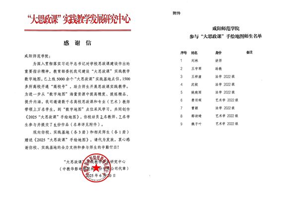 近日,教育部公布《2025“大思政课”手绘地图》入选名单,我校联合“赵梦桃纪念馆”制作的实践资源成功入选,并获得“大思政课”实践教学发展研究中心来信感谢。