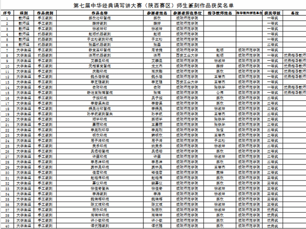 近日,由陕西省教育厅、省语委共同主办的第七届中华经典诵写讲大赛陕西赛区获奖名单公布。经过激烈角逐,我校师生荣获一等奖21项、二等奖24项、三等奖28项、优秀奖20项、优秀指导奖10项。