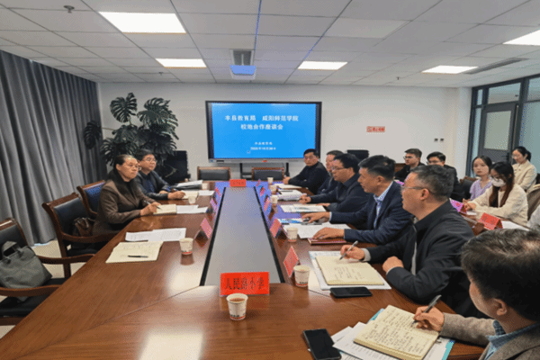 在丰县期间,调研组先后走访了丰县教育局、丰县实验初级中学、丰县修远学校等单位,并召开校地合作座谈会。丰县政协副主席、教育局局长韩云鹏代表丰县教育局对调研组一行表示欢迎,介绍了丰县教育事业发展概况,希望在大学生实习实训、教师培训、人才招聘等领域进一步加强合作。丰县人民路小学教育集团、民族中学等学校负责人分别介绍了各自办学情况。会上,双方签订了《咸阳师范学院共建就业创业实践育人基地协议书》,并就人才招聘计划、学生实习安排等具体事项达成合作意向。随后,调研组一行实地走访丰县实验初级中学和丰县修远学校,详细了解学校办学特色、教师需求及实习岗位情况。