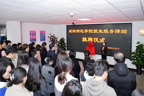 11月7日,“咸阳师范学院就业服务驿站”挂牌仪式在我校渭城校区博雅楼举行。校党委副书记周群英,咸阳市人力资源和社会保障局党组成员、副局长冯朝阳出席仪式。咸阳市人才交流服务中心副主任许蓉、咸阳市渭城区人力资源和社会保障局副局长王飞以及师生代表共同见证驿站揭牌。招生就业处处长王奥玲主持仪式。