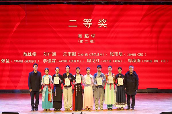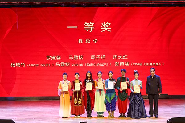 颁奖典礼在激昂的秦汉战鼓《大秦雄风》中拉开帷幕。展演以“铸师魂·润美育·向未来”为主题,紧扣师范生培养目标,全方位展示师范生卓越的教学成果与艺术才华。舞蹈《破锋》、民乐合奏《权御天下》与声乐四重唱《不忘初心》,尽显师范生扎实的专业根基,见证教育薪火的熠熠初燃。器乐合奏演唱《我的草原》、群舞《走进光里》《蘭叙》则通过多民族多形式艺术演绎,在律动中铸牢中华民族共同体意识,于美育课堂绽放“美美与共”的灿烂光华。流行歌曲串烧与汉族群舞《戏鼓》以青春潮音融合传统韵味,奏响新时代育人强音,见证师范生携知识与热爱,从聚光灯下走向三尺讲台,践行“为党育人、为国育才”的光荣使命。
