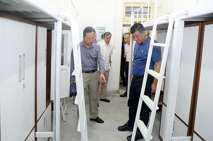 校领导先后深入到17、18号等学生公寓、迎新现场,现场查看了公寓改造、室内设施、周边绿化、宣传氛围、防疫准备、迎新流程、志愿服务等情况,听取了学生处、后勤保障处、保卫处、国有资产管理处、信息化建设办公室等部门负责人关于入学报到工作准备情况的汇报。