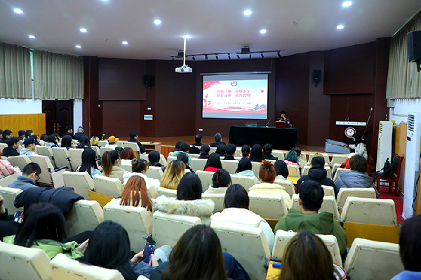 活动聘请了渭城公安分局经文保大队教导员寇建涛和一级警司王甲睿为主讲教官。以“敬畏法律、坚持正义、理智消费、崇尚文明”为题,结合他们的从警经验,通过案例、视频,从政治安全、健康安全、消防交通安全、网络信息安全、防范毒品赌博等五个方面讲授了校园安全防范要点及防骗方法。引导大学生树立正确的人生观、价值观、消费观,剔除侥幸心理,提高防骗意识,共创共度平安健康、稳定美好的大学校园生活。