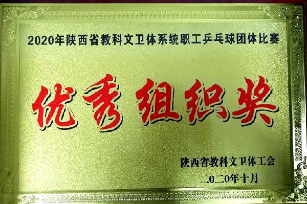 近日,由陕西省教科文卫体系统组织的全省本系统职工乒乓球团体比赛在陕西铁路工程职业技术学院举行,我校教职工乒乓球队获优秀组织奖。