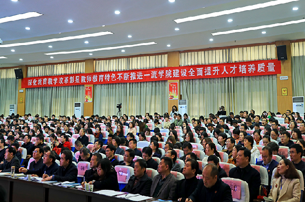王长顺作总结讲话。他指出,刘建林副厅长的报告主题鲜明、高屋建瓴,联系实际紧密、分析全面深刻,对我校本科教育教学改革具有重要的指导意义。全校师生要深入学习领会报告内容,坚持问题导向,更新教育思想观念,深化教育教学改革,不断提升教育管理水平和教育教学质量,以实际行动落实“以本为本,四个回归”,努力办好人民满意的教育,切实担负起为国育才的重任。