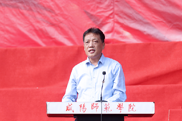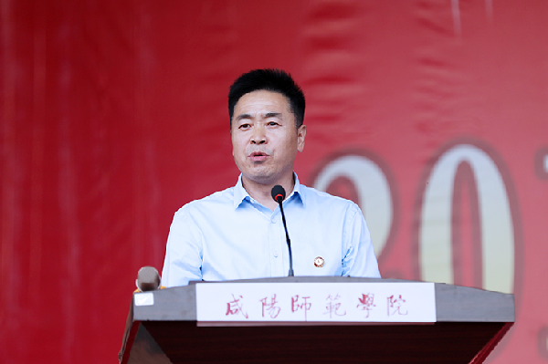 舒世昌作了迎新讲话。他代表学校向关心和支持学校国防教育工作的承训部队官兵表示诚挚的谢意,对全体指导员的辛勤付出致以崇高的敬意,向全体新同学表示衷心的祝贺,祝贺他们迎来人生梦想的新起点,开启人生的新征程。他以“勤学尚思、爱国兴校”为主题,向2019级新生提出了三点希望:一要求知不止、勤学尚思;二要乐于实践、善于创新;三要爱校重师、心系家国。以刻苦的磨砺成就真才实学,以奋斗的青春赓续咸阳师范学院的辉煌,献礼新中国成立70华诞。