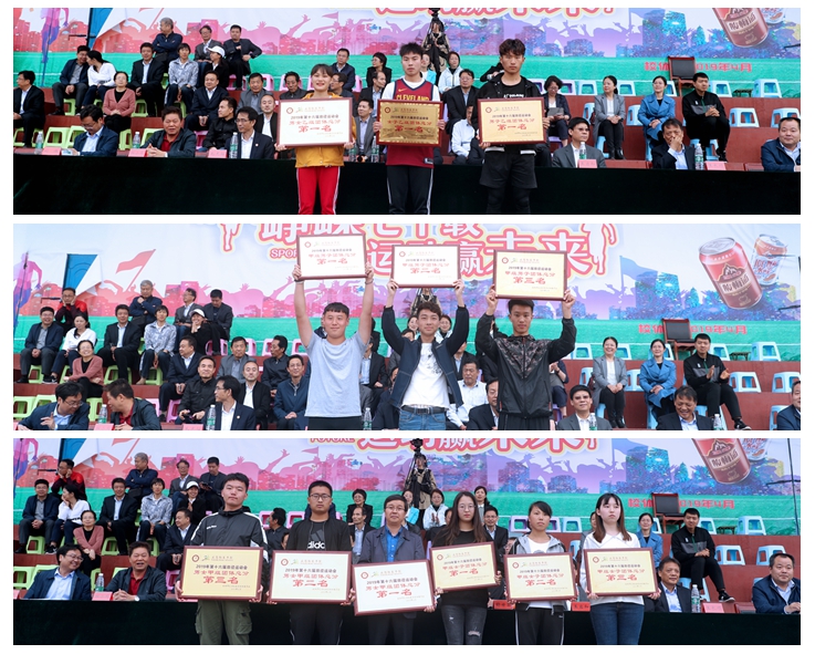 经过紧张激烈的角逐,物理与电子工程学院、资源环境与历史文化学院、数学与信息科学学院代表队分别获得甲组团体总分、男子团体、女子团体前三名。体育学院2018级代表队获得乙组团体总分、男子团体、女子团体第一名。文学与传播学院、化学与化工学院、教育科学学院、美术学院、体育学院获得“道德风尚队”,经济与管理学院、文学与传播学院、教育科学学院获得“网络最佳人气奖”,资源环境与历史文化学院、美术学院、经济与管理学院、物理与电子工程学院、设计学院被评为“2018年度阳光体育运动先进单位”。体育学院《咸师武魂》、数学与信息科学学院《动感数信》、团体群演《我和我的祖国+共筑中国梦》分别获得团体操表演一二三等奖,团体群演《我和我的祖国+共筑中国梦》获得“优秀组织奖”。在教职工趣味运动项目中,体育学院分会、美术学院分会、职业技术学院分会获得团体一等奖,文学与传播学院分会、化学与化工学院分会、图书馆(档案馆)分会、机关一分会获得团体二等奖,物理与电子工程学院分会、计算机学院分会、经济与管理学院分会、机关二分会、设计学院分会获得团体三等奖,物理与电子工程学院分会、机关二分会、政治与社会学学院分会获得