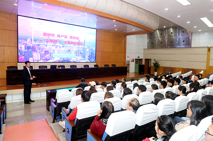 启动会后,西安电子科技大学创新创业学院副院长朱伟就大赛项目选题、计划书撰写、项目展示等内容为我校师生作了《真研究