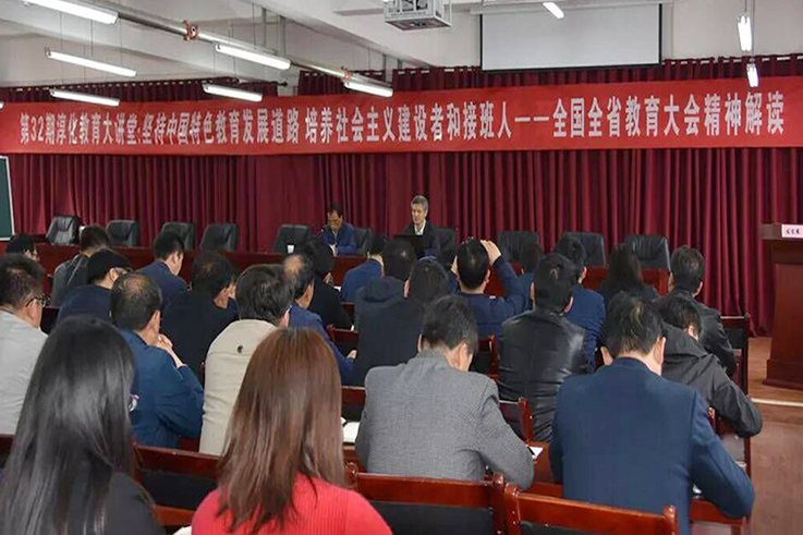 杨雪峰从教育的定位、方针和新理念、教育的根本任务和方向目标、教育领域综合改革以及对教师队伍的新要求等四个方面解读了全国教育大会精神。围绕坚定不移优先发展教育事业;大力培养德智体美劳全面发展的社会主义合格建设者和可靠接班人;加快建设高素质专业化的教师队伍;着力激发全省教育改革发展活力;切实加强党对教育工作的领导等五个方面深入浅出地解读了全省教育大会精神。