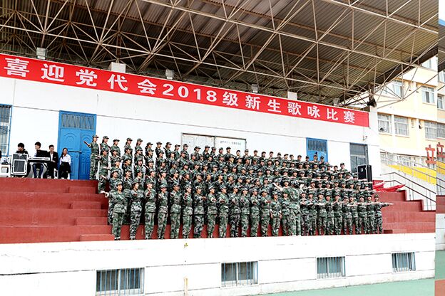 在喜迎党代会新生歌咏比赛中,军训各营精心组织,认真排练,分别演唱了《毕原放歌》《我和我的祖国》、《有我在》、《送你一枚小弹壳》、《一支钢枪》、《歌唱祖国》、《中国军魂》等歌曲。同学们歌声嘹亮,形式多样,展示了军训工作取得了优秀成绩,展现了当代大学生的青春活力,他们用优美嘹亮的歌声描述军营生活,以良好的精神面貌表达了他们热爱祖国、热爱人民、珍爱和平的美好心声,唱出了他们对自己美好大学生活的向往。