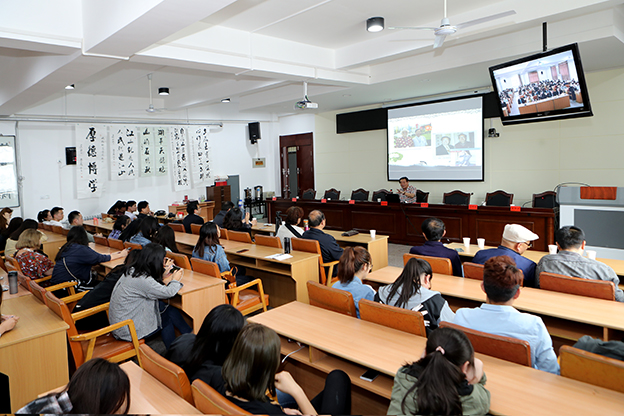 仪式后,张宗彪先生为我校师生作了题为《书法艺术与人生》的学术报告,并结合自己的人生阅历和对艺术创作的深刻体悟,分享了“写人只两笔,做人须一生”、“作字先做人,人奇字自古”的人生理念,并鼓励青年学子们走出去,广交朋友,丰富阅历,成为国家需要的栋梁之才。