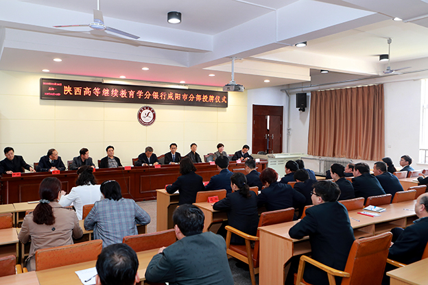 3月26日,陕西高等继续教育学分银行咸阳市分部授牌仪式在我校举行。我校副校长毛龙灿、陕西广播电视大学副校长张新华、咸阳市教育局副局长张立凯出席仪式。陕西广播电视大学咸阳市分校校长李景军主持仪式。