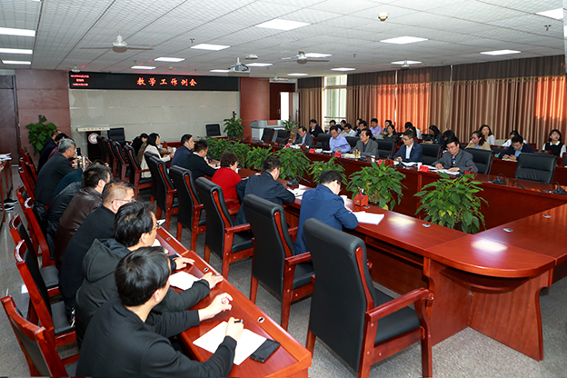 舒副校长结合2018年工作要点,安排部署了我校“双一流”建设、审核评估整改等5项重点工作,并对近期的教学工作提出了具体要求:一是按照“一流学院”、“一流专业”建设标准和2018年学校工作要点中的具体要求,扎实推进我校“一流学院”、“一流专业”的建设工作;二是再接再厉,按照《咸阳师范学院本科教学审核评估整改方案》所列目标任务要求,扎实做好审核评估整改的各项准备工作,确保审核评估整改中期检查和整改回访工作的顺利通过;三是按照教育部《普通高等学校师范专业认证实施办法》的要求,制定我校进一步加强师范专业建设与认证的实施方案,切实做好师范专业认证的各项准备工作;四是以加强应用型人才培养模式改革为目标,积极推进转型发展,认真做好2018年人才培养方案的修订工作;五是进一步加强创新创业试点学院、专业综合改革试点专业、特色专业、实验教学示范中心、精品资源共享课程等本科教学工程建设工作;六是以开展师范生师范技能大赛、微课比赛、青年教师课堂教学大赛为抓手,积极推进课堂教学质量的提高;七是切实加强教风、学风建设工作;八是按照教务处编制的月工作计划,积极做好各项日常教学工作。