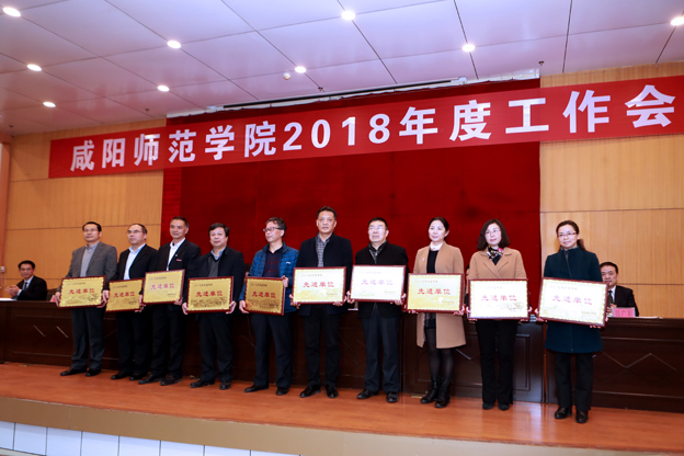 会上,副校长舒世昌宣读了《关于表彰2017年度考核先进单位和优秀个人的决定》。校领导为化学与化工学院、外国语学院、教育科学学院(基础教育研究中心)、经济与管理学院、科技处(咸阳发展研究院)、学科建设办公室、教务处(评建办公室)、党委宣传部(党委统战部、党委政策研究室)、党政办公室(机关二党总支)、财务处等考核先进单位颁发了奖牌。