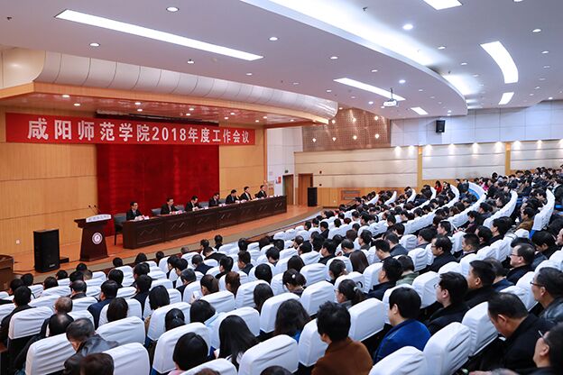 校党委书记刘彬作了讲话,回顾了2017年主要工作,并就2018年学校重点工作作了强调。他指出,2018年,是深入贯彻落实党的十九大精神的开局之年,也是我校奋力建设“一流学院”的开局之年;是我国改革开放40周年,也是学校建校40周年。我们要重点做好七个方面工作:第一,深入做好学校党建工作。要深入学习党的十九大精神,加强思想政治和意识形态工作,做好干部队伍建设和基层党建工作,持之以恒抓好党风廉政建设。第二,全力加强“一流学院”建设。要坚持问题导向,快速理清“一流学院”建设的思路,制定切实可行的建设方案,逐条分解建设的工作任务,逐项落实建设的工作责任,扎实做好各项建设工作。第三,积极争取各方支持。要充分发挥学校优势和特色,主动对接咸阳经济社会发展需要,争取地方政府的共建支持,争取校友和社会各界的更大支持。第四,着力提升教育教学质量。要落实审核评估整改工作,加强应用型人才培养模式改革,做好省级“一流专业”建设和师范专业认证工作。第五,持续加强学科建设工作。要坚持不懈围绕申硕这一龙头,抓好学科建设和科学研究。对标制定方案,重点推进工作,培育高层次项目和成果,确保科研经费不断增长。第六,全面深化各项改革。要高度重视改革进程中出现的新问题,坚持改革导向不动摇,做好人才队伍、大学生教育管理服务、后勤管理体制机制等方面改革工作。第七,扎实做好各项民生工程,为师生提供良好的学习、工作和生活条件。刘书记就落实各项工作、实现跨越发展强调,全校一要加强学习,不断增长干事创业本领;二要提高站位,不断提升工作标准要求;三要勇于担当,不断发挥党员干部的关键作用;四要脚踏实地,不断取得工作新业绩。刘书记希望大家以奋进者和搏击者的姿态,以更加昂扬的斗志,更加务实的作风,奋力打好学校改革发展攻坚战,向全校师生交上一份满意的答卷。