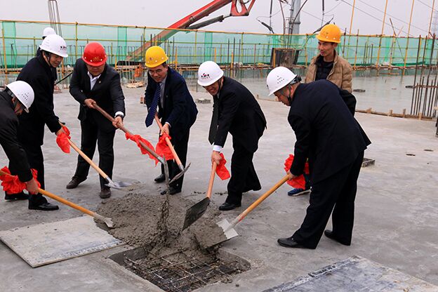 我校相关部门负责人、相关施工单位工作人员参加了封顶仪式。
