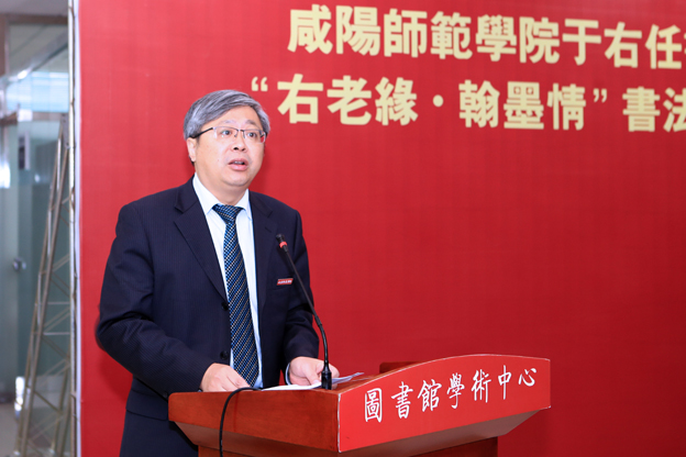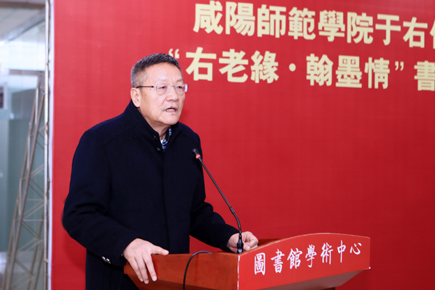 中共陕西省委统战部王彦平处长、中共陕西省委高教工委副巡视员高巍、陕西省于右任书法学会名誉会长、咸阳师范学院于右任书法学院名誉院长王改民、于右任先生之子于中令先生、台湾中国标准草书学会理事长陈铭镜分别发表讲话,对我校于右任书法艺术馆的落成表示祝贺,认为于右任书法艺术馆的落成将对于右任艺术精神的弘扬和书法艺术的传承有着重要的推动作用。