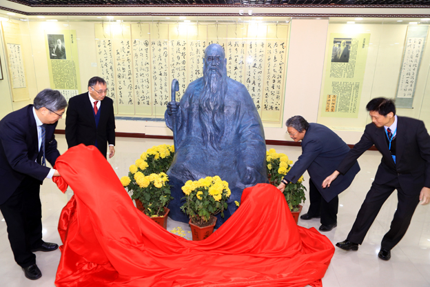 中共陕西省委统战部六处处长王彦平、中共陕西省委高教工委副巡视员高巍、国家行政学院博士生导师丁文锋教授、校党委书记刘彬,为于右任书法艺术馆揭牌;校长方明、于右任先生之子于中令先生、西安交通大学博士生导师钟明善先生、台湾中国标准草书学会理事长陈铭镜先生,在展厅共同为于右任先生铜像揭幕。