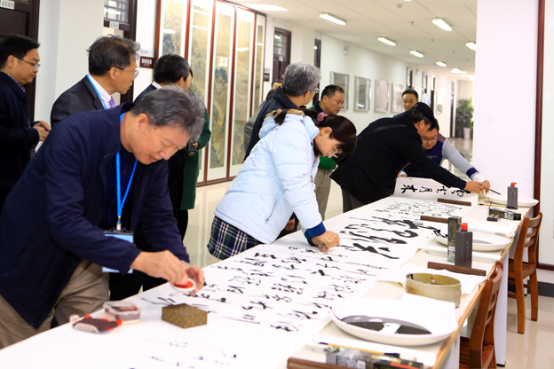 揭牌揭幕仪式之后,校领导、与会嘉宾及师生代表参观了于右任书法艺术馆;副校长吕广利在图书馆16层会议室主持了由台湾中国标准草书学会理事长陈铭镜先生主讲的“标准草书的笔法与运势”学术讲座;于右任书法艺术馆建设负责人、我校书法学博士王智杰教授在图书馆15层美术学院大厅主持了“右老缘•翰墨情”书法交流笔会。