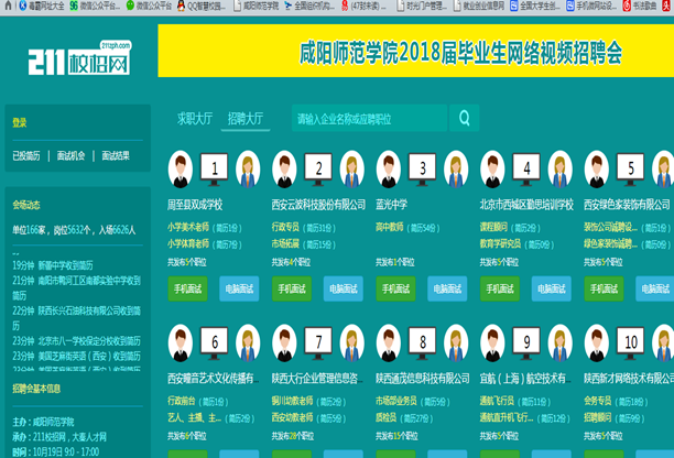 10月19日,我校联合陕西省高等学校毕业生就业服务中心和211校招网,举办了大型网络视频招聘会。