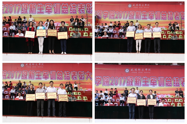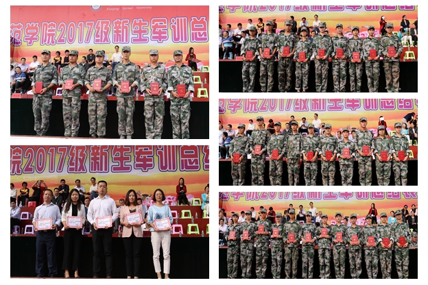会上,舒副校长宣读了军训先进集体和先进个人的表彰决定。音乐学院等3个学院被评为“军训歌咏比赛先进集体”,物理与电子工程学院等4个学院被评为“军训内务先进集体”,数学与信息科学学院等4个学院被评为“军训会操先进集体”,政治与社会学学院等4个学院被评为“军训先进集体”;吕永强等6名教官被评为“军训优秀教官”,毛莹等5名辅导员被评为“优秀指导员”,蒋雪艳等41名同学被评为“军训标兵”,赵怡然等163名同学被评为“军训先进个人”。学校领导和承训部队领导为先进集体和个人颁发了奖牌和证书。