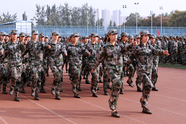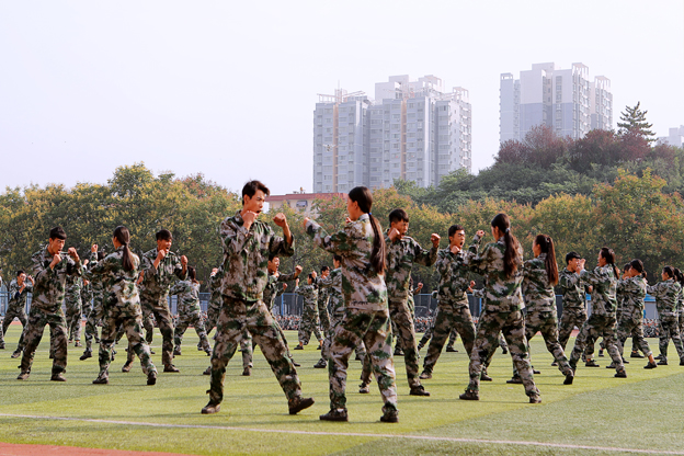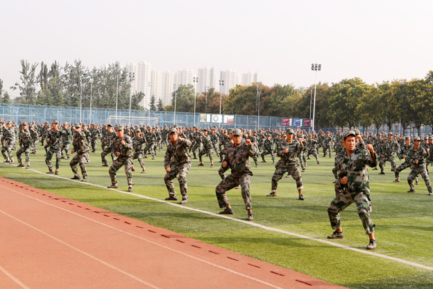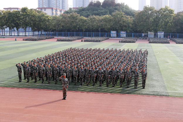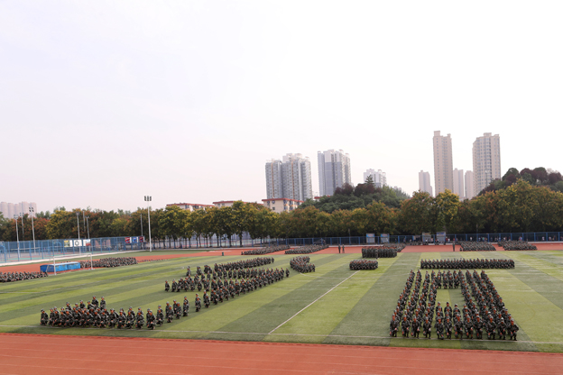 在激昂雄壮的国歌声中,3544名新生整装列队,以昂扬饱满的精神状态迎接国旗入场。在随后的汇报表演中,各军训方队分别表演了队列表演、匕首操表演、军体拳表演、全民运动表演、花样队列表演和防身擒敌配套表演等科目。表演过程中同学们精神饱满,动作规范,队列整齐,气势雄壮,充分展示了军训成果,表演精彩,赢得了全场阵阵掌声。