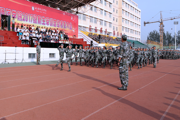 9月23日,2017级新生军训总结表彰大会在我校田径运动场隆重举行。校党委书记刘彬,校党委副书记李宗领,副校长舒世昌,中国人民解放军陕西陆军预备役高炮师四团徐鹏云少校出席大会。大会由学生工作处处长刘伟主持。