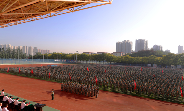 在秦都校区,方校长勉励全体新生要珍惜自己的美好青春,脚踏实地,励志创新。他对同学们提出四点要求:第一,勤于修身,学会做人。第二,勤于思考,勇于创新。第三,遵纪守法,诚实守信。第四,爱校如家,团结和谐。方校长希望同学们积极参训、学有所成,以饱满的热情和高昂的斗志投入训练,实现心智和体能的双提升,在军训中收获勇毅、在军训中实现成长。