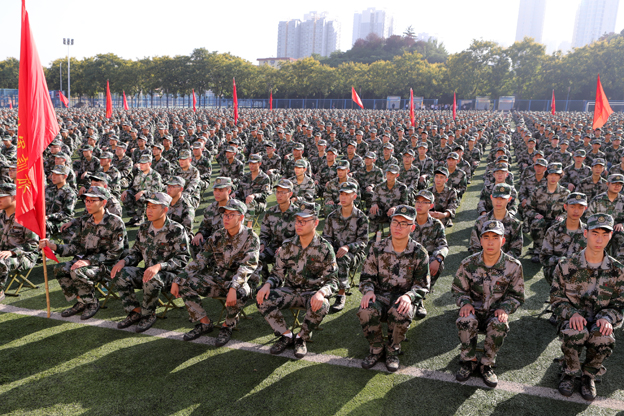 刘书记向新生军训旅授军旗,2017级新生军训正式启动。