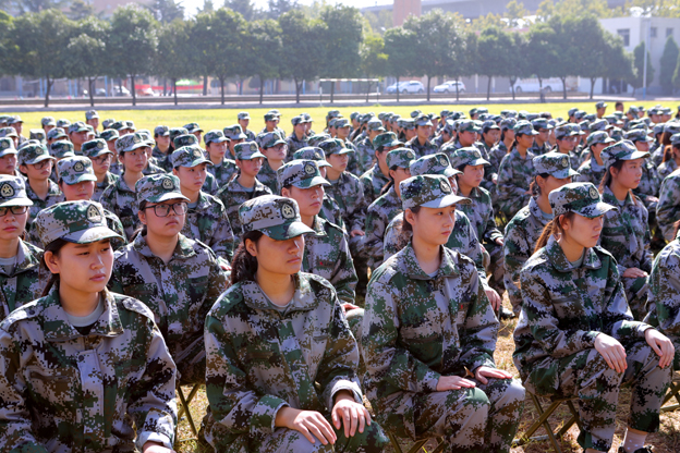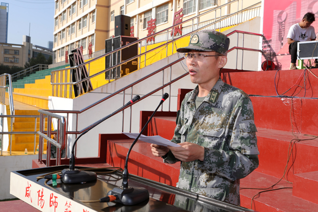 中国人民解放军陕西预备役高炮师四团参谋长曹海滨中校代表承训单位讲话,对全体军训教官和参训学生提出要求。他希望全体官兵严格执行军训计划,科学组训,从严施训;希望同学们严格要求,发扬敢于吃苦的好传统,养成良好的行为规范。教官代表曹志兴、新生代表文学与传播学院孙思礼同学分别发言。