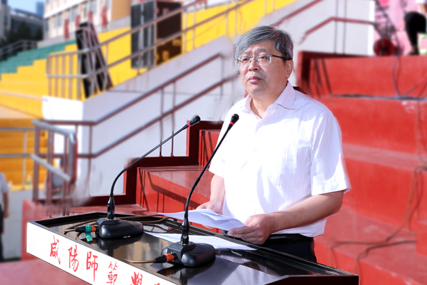在渭城校区,方校长发表了热情洋溢的讲话。他代表学校师生员工向来自全国各地的3700多名2017级新生表示热烈欢迎,向承担我校军训工作任务的中国人民解放军陕西预备役高炮师的教官致以亲切问候和衷心感谢。方校长介绍了学校的基本概况和发展历程后,向2017级新同学提出三点希望:一是希望同学们敢于担当,勇挑重担,做一个心系家国的人;二是希望同学们敢于担当,勇挑重担,做一个爱校重师的人;三是希望同学们敢于担当,勇挑重担,做一个人格独立的人。面对即将开始军训的新生,方校长强调,军训是大学生活的第一课,是国家一项长期的爱国战略任务,是履行兵役义务的一种基本形式,是加强国防后备力量建设的重要战略,是培养“四有”新人的重要途径,希望同学们端正态度,严格要求,敢于吃苦,顽强拼搏,服务命令,听从指挥;希望同学们把军队的好思想、好作风、好传统运用到自己的大学生活中,做一个有担当的人。