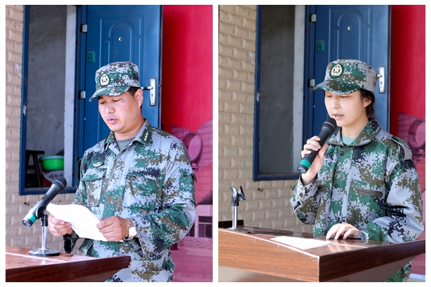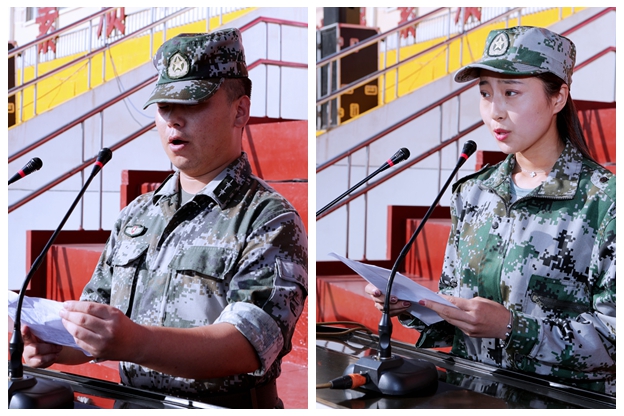 军训教官代表申新鹏、新生代表王欢同学分别发言。