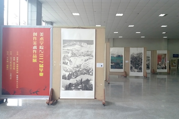 6月2日,校长方明,党委副书记李宗领,副校长舒世昌、吕广利参观了美术学院2017届毕业创作作品展。