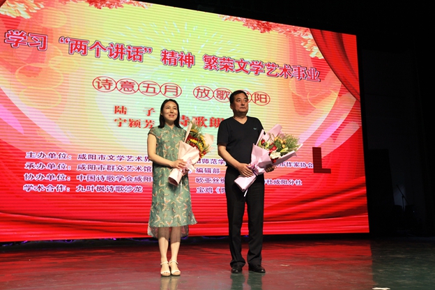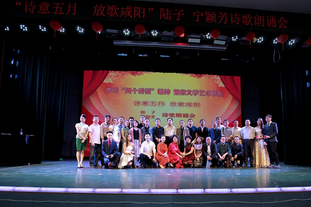 5月16日晚,“诗意五月·放歌咸阳”陆子 宁颖芳专题诗歌朗诵会在我校艺术楼演播厅隆重举行。校党委副书记李宗领、党委宣传部部长李养民,招生就业处处长张高科,文学与传播学院党委书记曹晓红,文学与传播学院院长袁方,咸阳市文联党组书记贾黎明,咸阳市作协副主席董信义,我校客座教授、著名作家杨焕亭,咸阳地区作家、诗人以及社会各界文学爱好者和我校师生600多人欢聚一堂,歌颂五月,放歌咸阳。