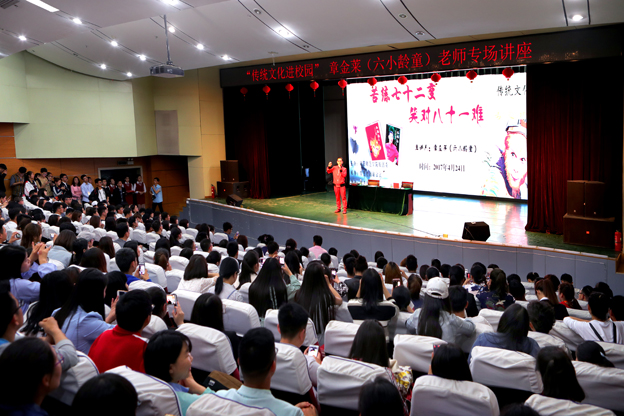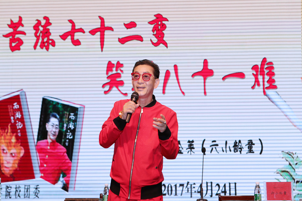 4月24日下午,我国著名表演艺术家,电视剧《西游记》中孙悟空的扮演者,“德艺双馨终身成就奖”获得者六小龄童——章金莱应邀来我校,以“苦练七十二变,笑对八十一难”为主题为我校师生作了一场“传统文化进校园”的励志专题讲座。