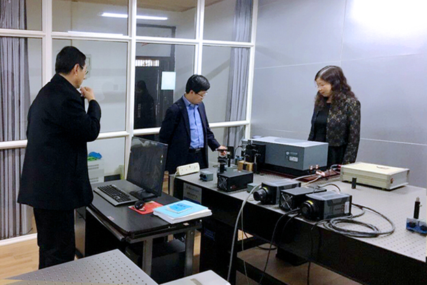 4月11日下午,全国政协委员、中国科学院近代物理研究所蔡晓红研究员在中国科学院近代物理研究所所长肖国青研究员的陪同下,调研我校“离子束与光物理实验室”。