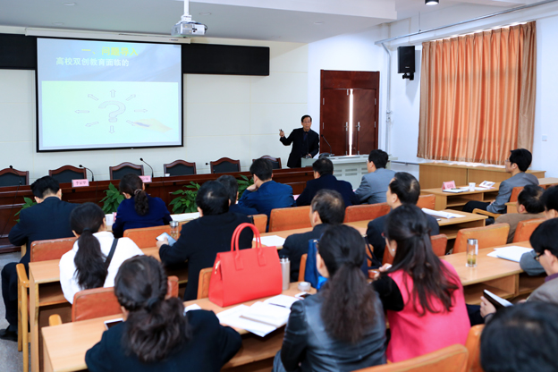 上午的报告会由校党委副书记李宗领主持。李家华教授从高等学校创新创业教育面临的问题入手,以问题为导向,以“双创”教育内生动力构建为主线,以案例为题材,从时代背景、国家政策、高校现状,分析了如何构建高校创新创业教育的生态环境。同时他阐明了高校创新创业教育的方法,并指出要坚定创新创业教育的实践自觉,注重创新型、创造型人才的教育培养,提高人才培养质量。他同与会老师进行了互动,回答了老师们提出的创新创业教育方面的问题。