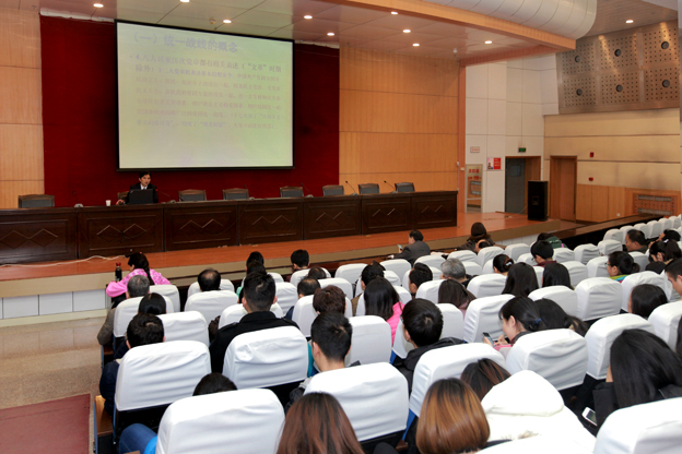 报告会上,王家武老师结合我校工作实际,从是什么、为什么、做什么等三个方面科学阐释统战工作的理念:一是牢固基础,加强统战队伍的建设,坚持大团结和大联合;二是在当前形势与任务下,统战工作的地位和作用不容动摇,要高度重视,搞好统战工作;三是加强组织领导,形成工作合力,要找准着力点,加大政策宣传教育。王老师的报告语言幽默风趣,深入浅出、旁征博引、针对性强,引起现场师生的强烈共鸣。