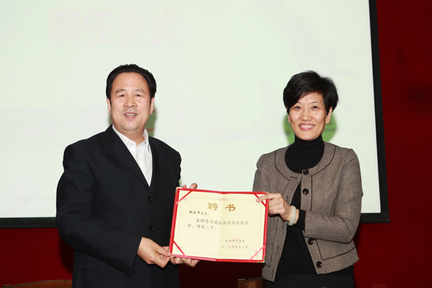 首先,学校举行了隆重的就业创业指导师聘任仪式,李宗领副书记为别立华主任颁发了聘任证书。