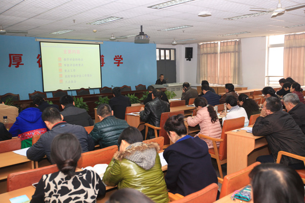 11月28日,学校召开审核评估自评工作培训会。审核评估校内自评专家、各二级学院院长、教学副院长、办公室主任、教学秘书、教务处全体人员参加会议。会议由副校长舒世昌主持。