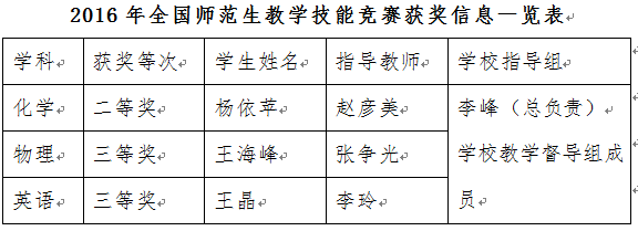 突出成绩的取得,既是对我校师范生培养成效的大检验,也是对我校师范生扎实专业功底的大展示,更是对我校教师教学能力水平的大检阅。学校将以此为契机,不断强化教师教育特色,进一步加强师范生实践技能能力的培养,加大实践教学环节投入力度,培养适应地方基础教育的合格师资。