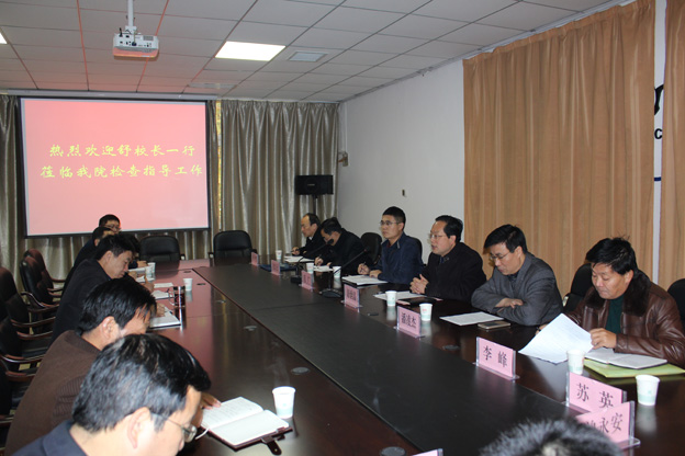 汇报会上,职业技术学院副院长赵增新从学院基本情况、专业建设、实验室建设、师资队伍建设、教风建设、学风建设等方面向检查组做了全面的汇报。舒副校长充分肯定了职业技术学院成立以来所取得的成绩,认为职业技术学院工作思路清晰、整体规划合理、责任目标明确、各项措施得力、工作成效显著,并对职业技术学院今后工作的开展提出四点要求:一是抓好教学档案与教学文件建设;二是不断提高教师教育教学水平,抓好课堂教学质量;三是抓好学风与考风建设,营造良好教学氛围;四是抓好实验教学与实验室建设。