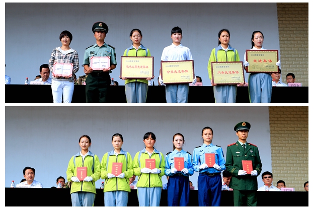 副校长舒世昌宣读军训先进集体和先进个人表彰决定,与会领导和军训营营长为获奖集体和个人颁发了荣誉证书。