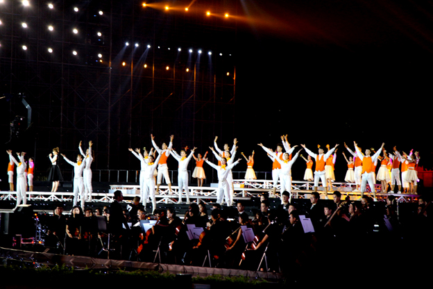 9月23号晚,我校音乐学院师生在西安曲江新区参加由国家新闻广电总局电影局、陕西省新闻出版广电局、西安市人民政府承办的第三届丝绸之路国际电影节的合唱表演。