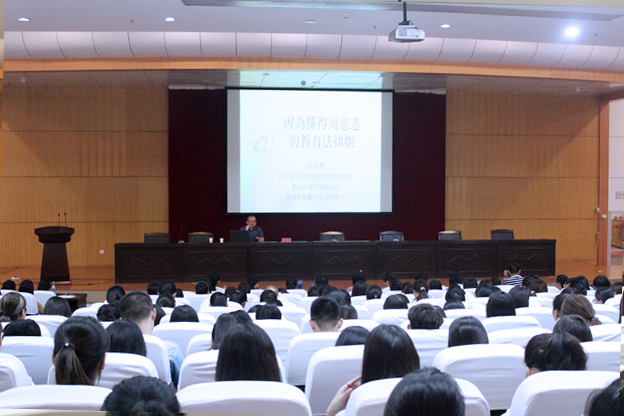9月1日下午,应教育科学学院的邀请,台湾国立成功大学许育典教授来我校,作了题为“因为懂得而慈悲的教育人文观”的学术报告。教育科学学院全体教师和文科类四百多名学生参加了本次报告会。报告会由教育科学学院副院长张争光主持。