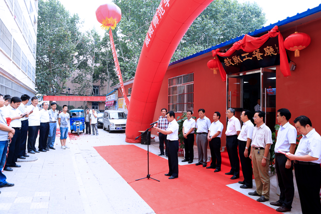 副校长吕广利代表学校致辞。他首先对教职工餐厅顺利开业表示衷心祝贺,向关心、支持教职工餐厅建设的领导和师生员工表示感谢,向杨凌中盛餐饮管理有限公司领导及为学校提供餐饮服务的所有工作人员表示感谢。随后,吕副校长指出,教职工餐厅的建设受到广大教职工的关注,它的建成,是学校献给全体教职工的一份节日礼物。改善教职工就餐环境和质量,提升学校综合服务保障水平,既是全校教职员工的热切期盼,更是学校落实以人为本办学理念的具体体现。他就后勤饮食管理服务工作提出了四点希望:一是饮食管理人员要将相应制度“落到实处”。要将“餐饮管理制度、餐具管理制度、个人卫生管理制度、餐饮设施设备保养制度、后厨管理制度”落到实处。同时要全力做到食品安全卫生监督到位;二是餐饮经营公司要把好“五关”。要把好“食品进货关、货物验收关、加工卫生关、餐具消毒关、销售价格关。”同时要改善服务态度,提高服务质量,及时了解教职工就餐多样化需求,增加花色品种,凸显特色,提供物美价廉,色香味俱佳的饭菜食品,以周到、温馨、优质的服务,让教职工吃上放心餐、舒心饭,赢得教职工的信赖;三是后勤部门认真总结,加强管理和指导;四是全校教职工多提宝贵意见。最后,吕副校长表示,在大家的共同努力下,我校教职工餐厅一定能办出自己的特色和品牌,成为全校餐厅的新亮点。