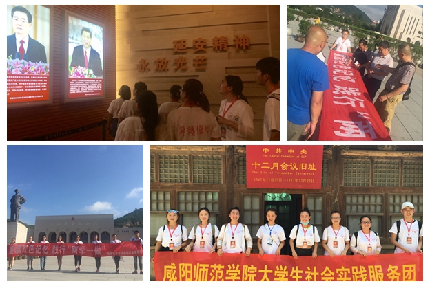 7月中旬,在陕西省榆林市,教育科学学院爱国主义教育实践团分别前往榆林老街、米脂杨家沟、绥德革命烈士陵园;在延安,实践团前往延安革命纪念馆及枣园革命旧址等地,通过参观红色革命旧址、走访革命前辈、召开基层党支部座谈会等形式,形成专题调研与实践报告。15日,在延安枣园村委会,实践团举行了以“两学一做”为主旨的党员座谈会。村支部书记对此次活动给予大力的支持和赞赏,并赠予志愿者《枣园村村史》画册作为纪念,并勉励同学们弘扬革命精神,为实现中华民族伟大复兴的中国梦作出新的更大贡献。