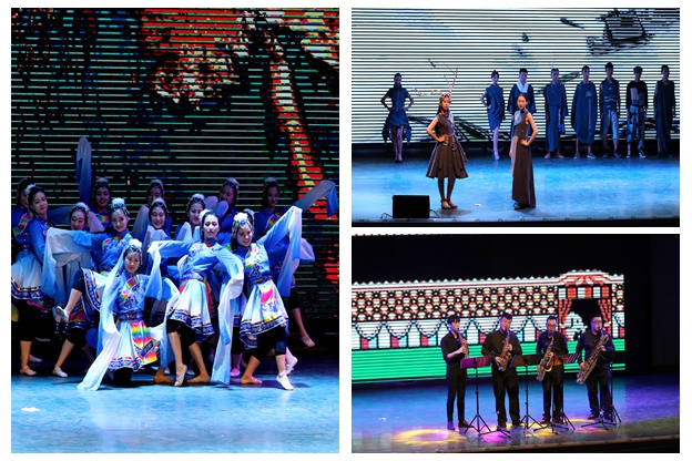 晚会在音乐学院选送的舞蹈表演《采薇》中拉开帷幕,穿插了颁奖环节与文艺节目展演。文艺节目展演包括文化艺术节、科技节部分获奖节目及学生社团特色节目,充分彰显了我校校园文化的深厚底蕴和大学生的创新精神、青春风采,博得了在场师生的阵阵掌声。整场晚会恢宏大气、精彩纷呈、喜庆欢腾。