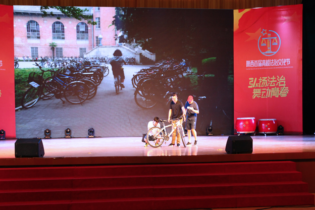 6月24日,“陕西首届高校法治文化节闭幕式暨法制文艺汇报演出”在西北大学现代学院盛大举行。由我校党委宣传部推荐、文学与传播学院杨勇老师带队指导,文学与传播学院话剧团四名学生自编自演的话剧《开锁》参加了本届高校文化艺术节闭幕式暨法制文艺汇报演出,荣获“优秀节目奖”。
