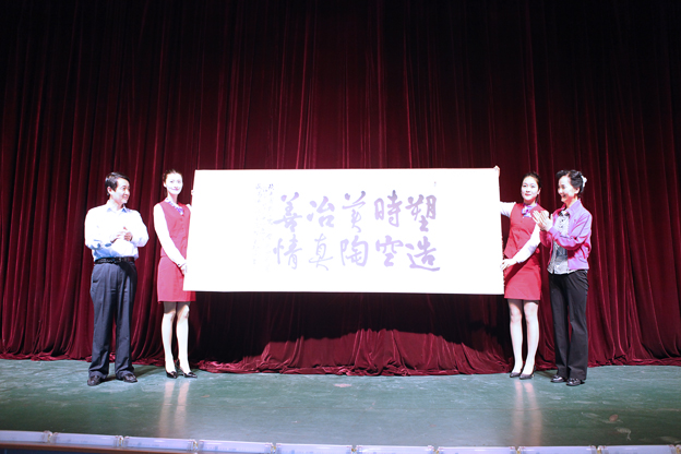 话剧《心中的红蜡烛》是一部弘扬传统美德和呼唤真诚孝道的原创话剧,真实讲述当今社会年轻人如何关爱老年人的晚年生活的感人故事。故事剧情安排精致细腻流畅,情节扣人心弦、极富艺术感染力,深刻强调了“爱不会死,爱不会忘;有爱就有幸福,有爱就有希望”的高尚精神内涵,突显出亲人之间爱的呼唤。演员们更是用他们精湛入微、真挚动人的表演技艺,紧扣教育和社会现实的深邃主题,向观众诠释了中华民族的传统美德——人间孝道。整场演出给观众以强烈的心灵震撼和思想共鸣,情节场景无不令人动容,潸然泪下,掌声响彻演播厅。演出结束后,学校领导上台与全体演职人员合影留念。
